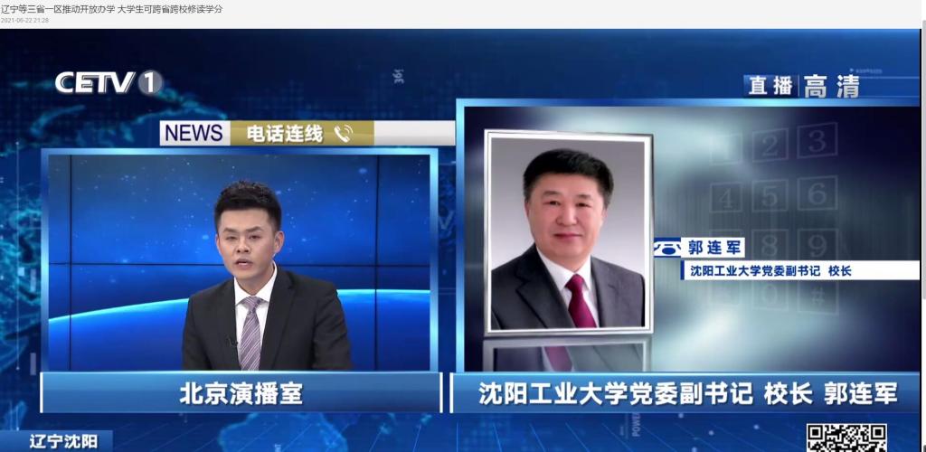 6月22日,中国教育电视台就辽宁等三省一区推动开放办学情况采访了我校党委副书记、校长郭连军。郭连军表示,进入新发展阶段,共享新发展机遇,要贯彻新发展理念,破解东北高校当下困境。