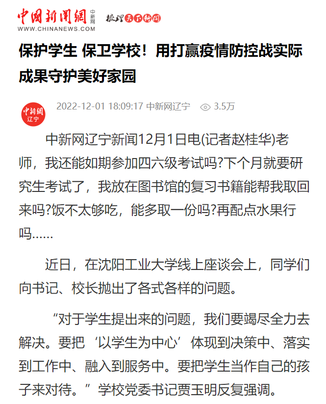 诉求就是工作方向,问题就是工作重点,全力以赴保护学生、保卫学校是学校头等大事。守望相助、共克时艰,同心同力、同向而行,筑牢防控屏障,用打好打赢疫情防控大仗硬仗的实际成果守护美好家园。