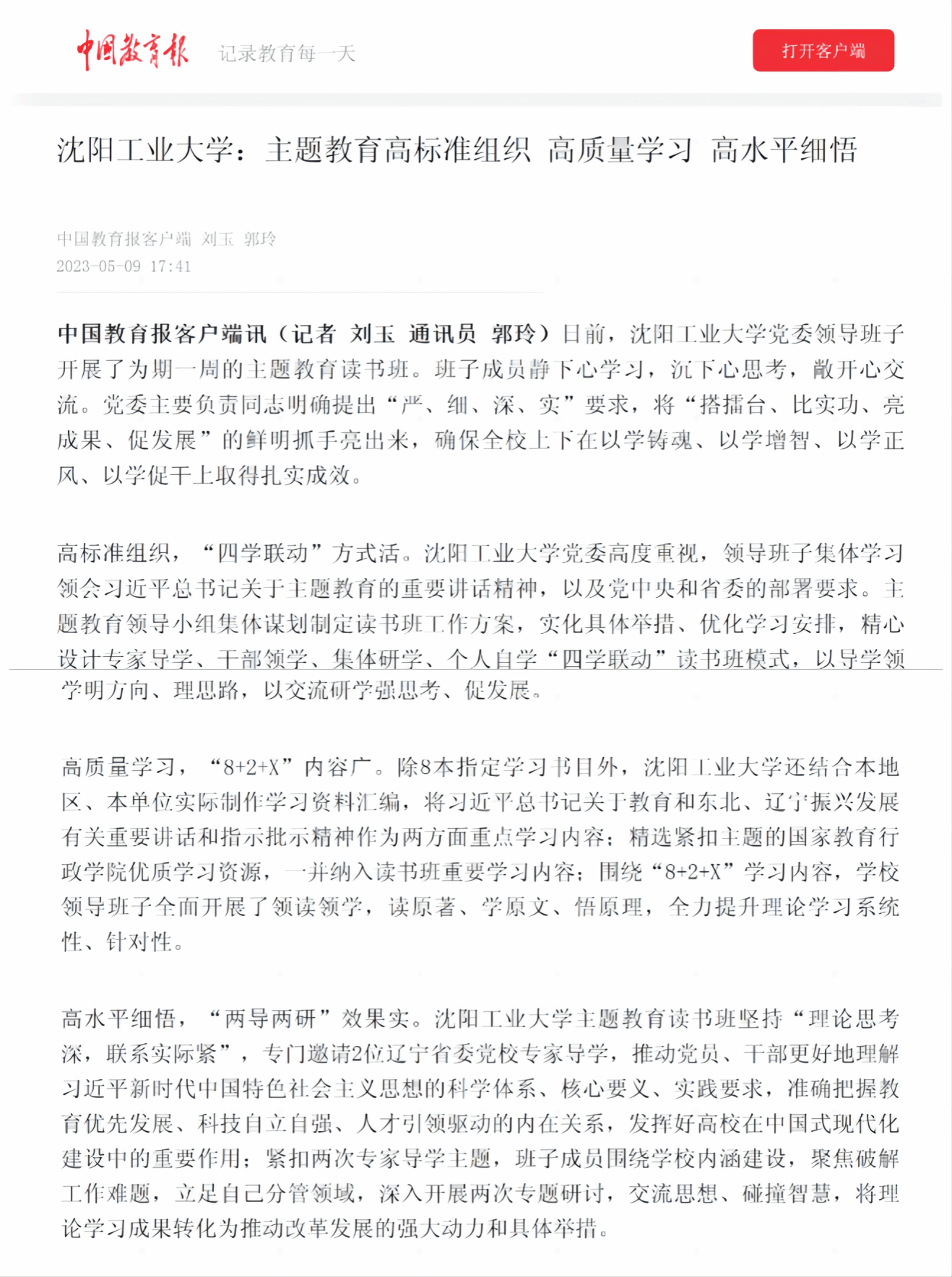 高水平细悟,“两导两研”效果实。江南娱乐主题教育读书班坚持“理论思考深,联系实际紧”,专门邀请两位辽宁省委党校专家导学,推动党员、干部更好地理解习近平新时代中国特色社会主义思想的科学体系、核心要义、实践要求,准确把握教育优先发展、科技自立自强、人才引领驱动的内在关系,发挥好高校在中国式现代化建设中的重要作用;紧扣两次专家导学主题,班子成员围绕学校内涵建设,聚焦破解工作难题,立足自己分管领域,深入开展两次专题研讨,交流思想、碰撞智慧,将理论学习成果转化为推动改革发展的强大动力和具体举措。