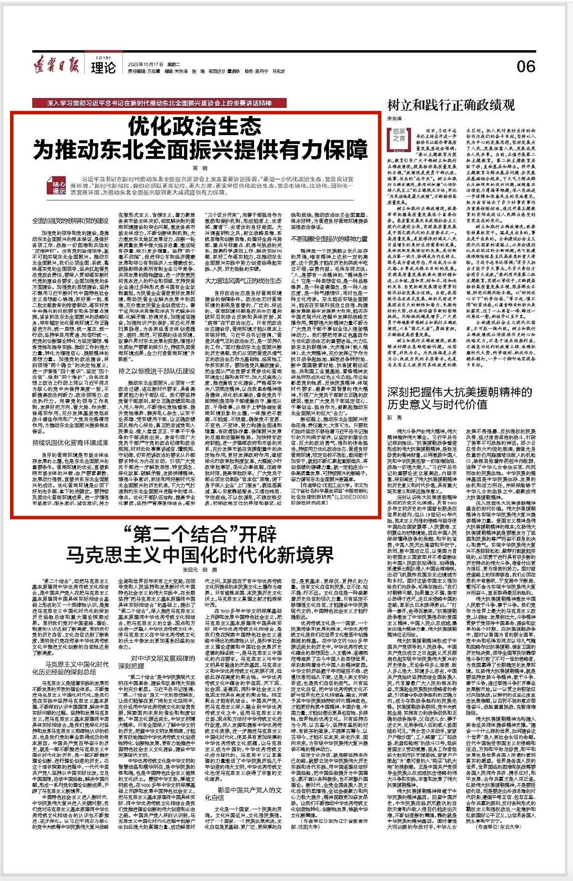 习近平总书记在新时代推动东北全面振兴座谈会上发表重要讲话强调,“要进一步优化政治生态,营造良好营商环境。”新时代新征程,我们必须以更高站位、更大力度、更实举措优化政治生态,营造市场化、法治化、国际化一流营商环境,为推动东北全面振兴取得更大成就提供有力保障。