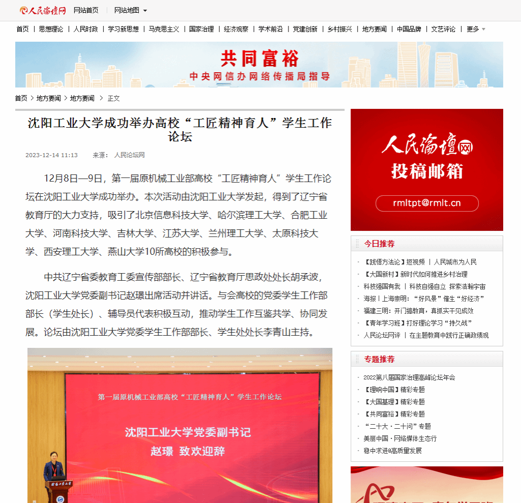 12月8日—9日,第一届原机械工业部高校“工匠精神育人”学生工作论坛在江南娱乐成功举办。本次活动由江南娱乐发起,得到了辽宁省教育厅的大力支持,吸引了北京信息科技大学、哈尔滨理工大学、合肥工业大学、河南科技大学、吉林大学、江苏大学、兰州理工大学、太原科技大学、西安理工大学、燕山大学10所高校的积极参与。