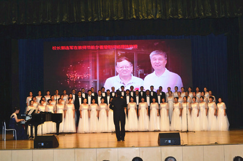 为庆祝第35个教师节,大会还安排了精彩的文艺汇演。学生代表为老师们献上了歌曲《每当我走过老师窗前》;校教师歌咏协会带来了大合唱《不忘初心》;离退休老教师代表演绎了唯美舞蹈《荞麦花》;最后,全体师生合唱歌曲《我和我的祖国》,向建国建校70周年献礼!