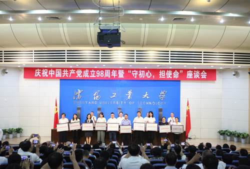 全校中层以上党员领导干部,教师党员、学生党员代表,获奖单位及个人代表,沈阳校区全体党支部书记、组织员参加会议。