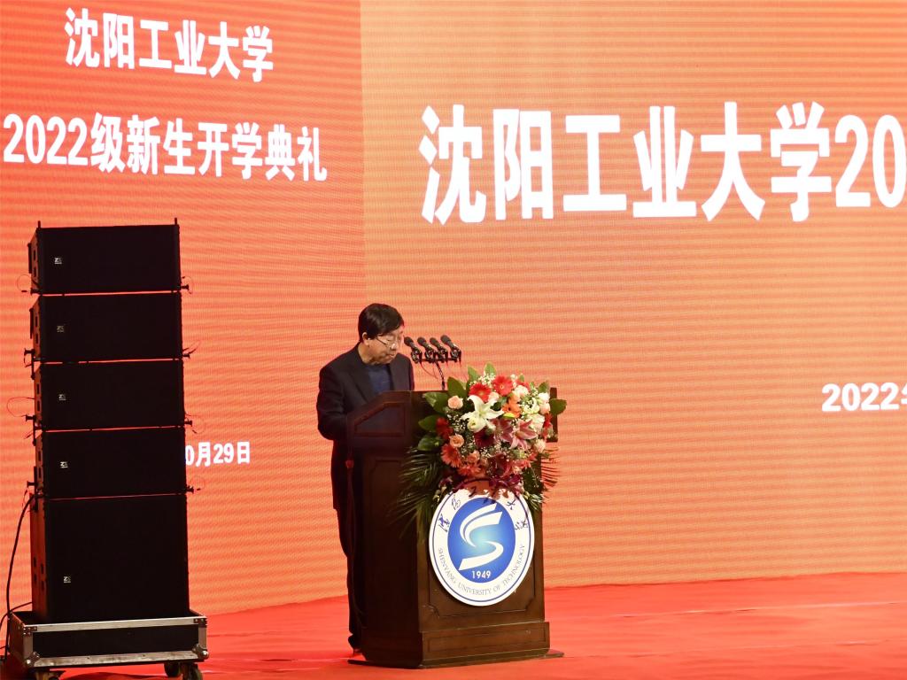 辽宁省教学名师、马克思主义学院院长杨乃坤,2020级硕士研究生阿丽米热、2019级博士研究生孙鹏、2018级本科生牟虹菲分别作为教师代表和在校生代表发言。党的二十大代表洪家光、东南大学副校长孙立涛、“海斗一号”万米潜水器总设计师唐元贵、全国脱贫攻坚先进个人郭子涵代表校友为新生送来祝福视频。来自14个学院的新生代表带来诗朗诵《我爱祖国,强国有我;我爱工大,一流有我》。来自全国31个省、市、自治区的新生家长代表通过视频的方式为学生送上祝福和寄语。典礼现场还举行了校徽佩戴仪式,与会校领导为新生代表庄重地戴上校徽,期待共同书写更精彩的工大华章!