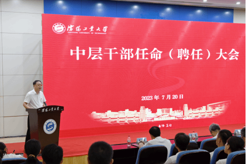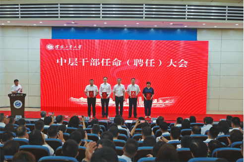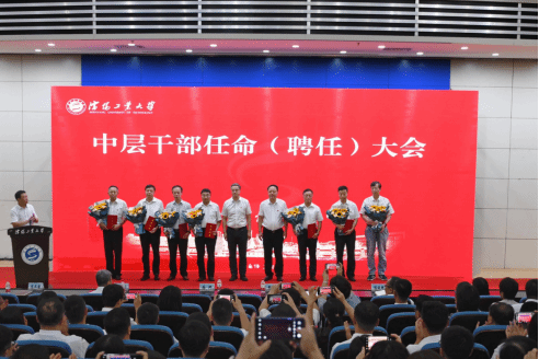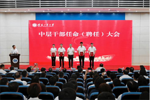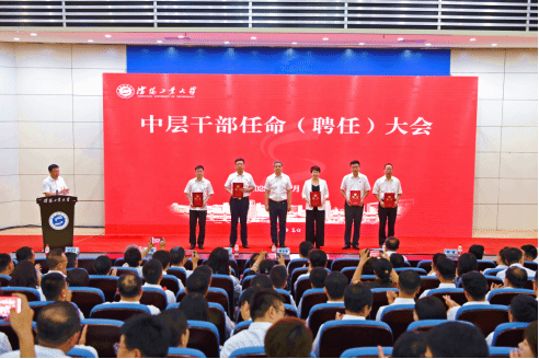 贾玉明在任命大会上讲话。他指出,本次中层领导班子和领导干部换届工作坚持以习近平新时代中国特色社会主义思想为指导,坚持以习近平总书记关于加强干部队伍建设的重要论述和新时代党的组织路线为根本遵循,坚持新时代好干部标准,对位学校事业发展需要,大力营造风清气正选人用人氛围。学校党委在两个多月里,加强领导、精心谋划、周密组织、统筹推进,确保换届工作平稳有序。本次换届,学校党委共任命182名中层干部,其中正职84名,副职98名。新提拔干部85名,其中正职38名,副职47名,干部队伍年龄结构、专业类型结构进一步优化,学历水平进一步提升,各级各类干部储备和梯队建设有效加强。本次换届中有37名中层干部因为年龄和本人意愿等原因不再继续任职,贾玉明满怀深情地对他们长期扎根本职工作岗位,为学校发展建设所作出的贡献表示由衷的敬意和感谢。