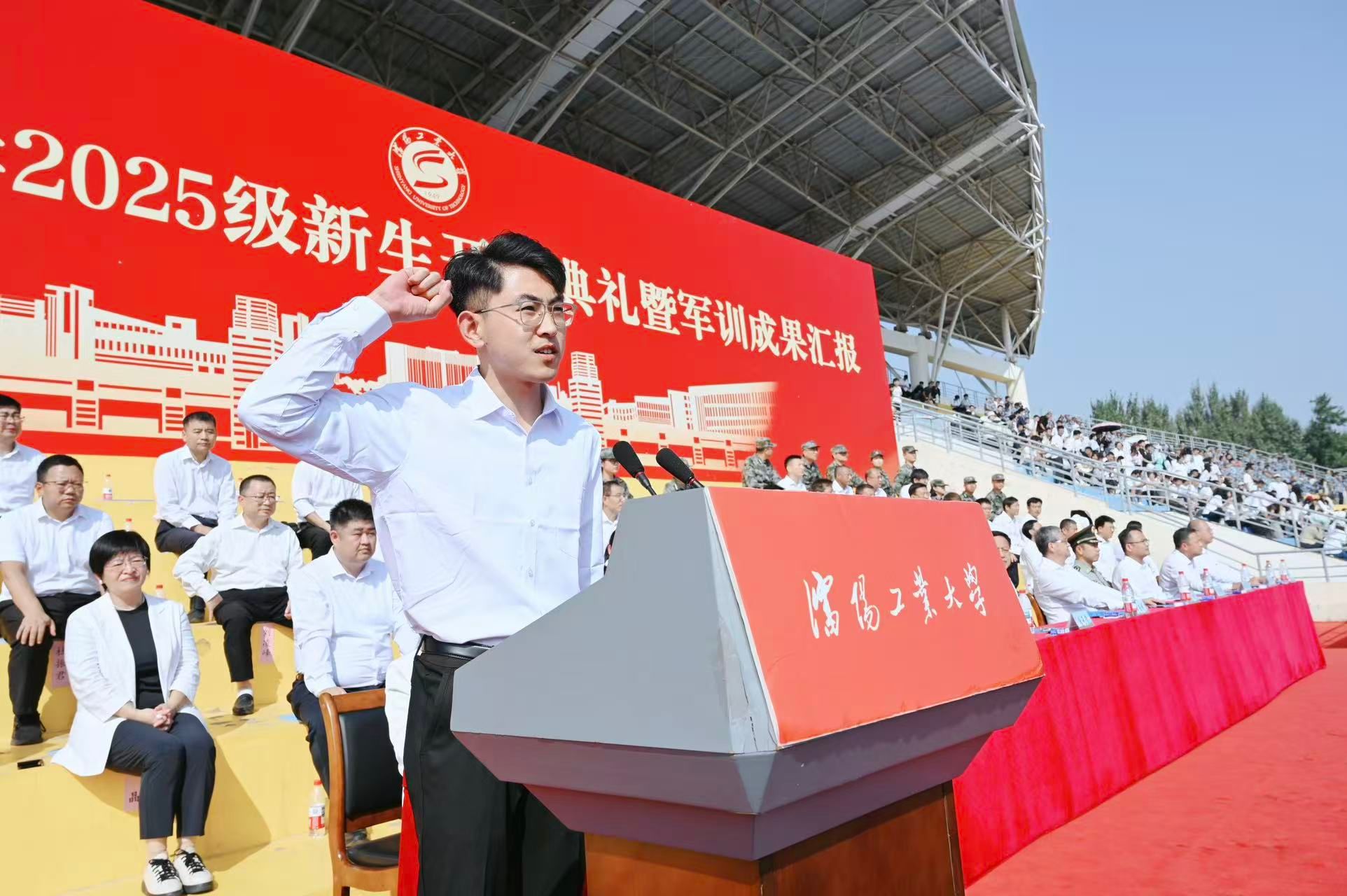 在卓越工程师学院林飞龙同学的带领下,全体2025级新生进行庄严宣誓,他们用铿锵有力的声音,展现出新一代“工大人”昂扬向上的精神风貌和为梦想奋斗的坚定决心。