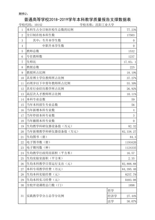 2018-2019学年本科教学质量报告支撑数据表